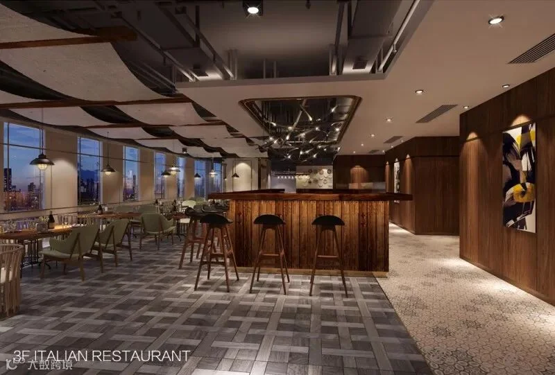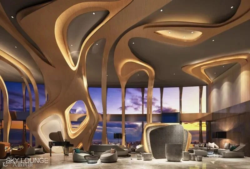 在31层的Sky Lounge用餐,可以欣赏日出日落,气象万千的壮丽美景,更可俯瞰都市全景。天花板的装饰如同榕树的树冠,一直延伸到窗边,整个空间显得恢宏壮观。