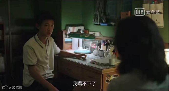 朱朝阳的母亲监督儿子喝牛奶,随意而温柔地说:“喝吧,喝完了早点睡觉,我好洗杯子。”