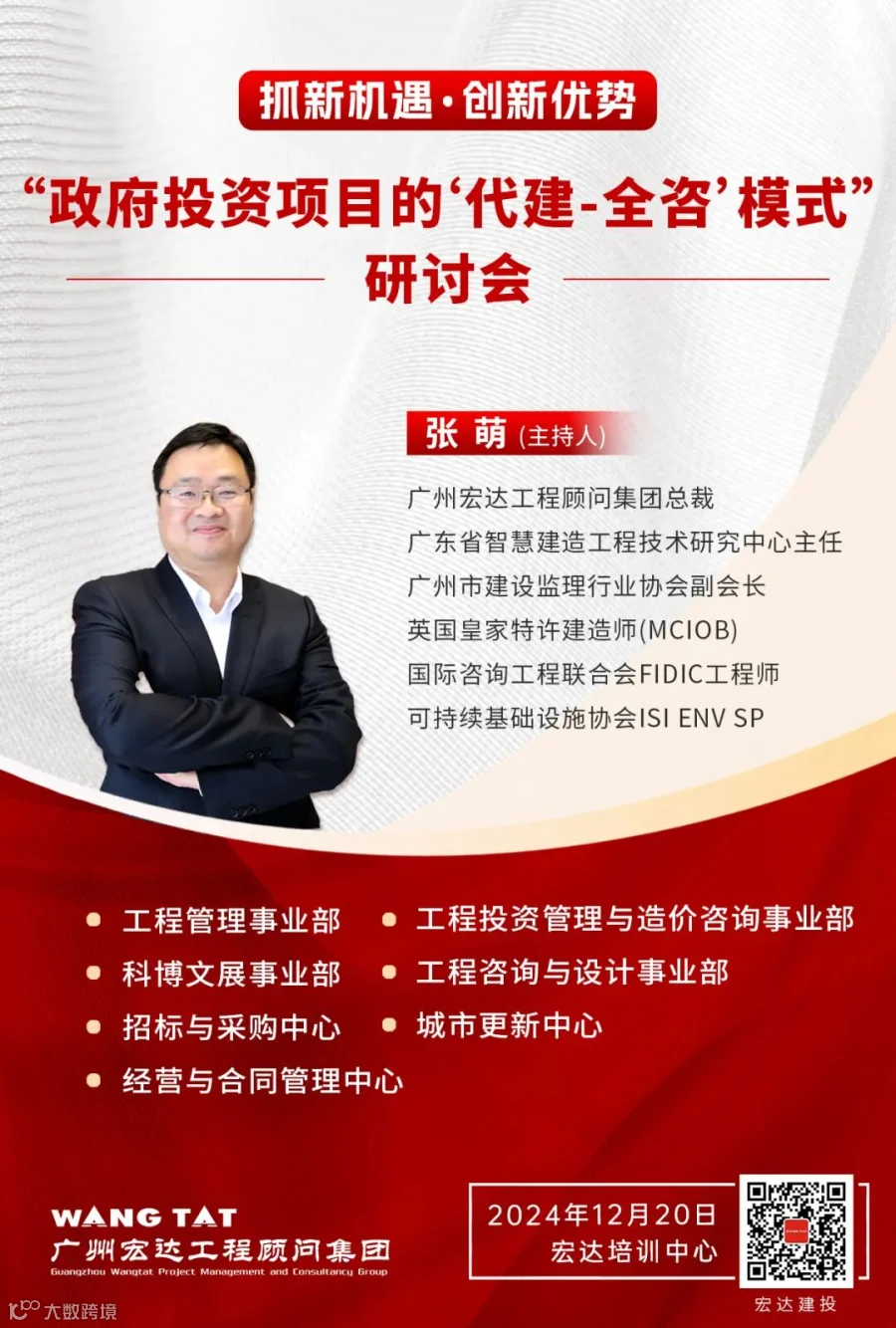 辞旧迎新之际,广州宏达工程顾问集团(下称“宏达集团”)举办了年度研讨活动,探索工程服务全产业链业务的创新发展。12月20日的主题是“政府投资项目的‘代建-全咨’模式”,活动由集团总裁张萌主持,咨询事业部、工管事业部、造价事业部、科博事业部、经营中心、招标中心、城市更新中心等各业务板块管理层和业务骨干两百多人线下线上同步参加了研讨活动。