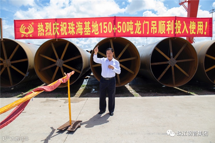 集团董事局陈昌主席、陈国雄董事长亲临码头参加此次投用仪式并点燃炮竹,陈主席感慨万分地说:“我们公司150+50吨龙门吊顺利投入使用,标志着我们企业甩开了历史包袱,从今走向繁荣富强。有了新的龙门吊,我们的能力增强,能接更多钢管订单,我们的企业更加兴旺发达;同时感谢全体员工的辛勤付出,祝愿珠海基地发展一天比一天好,生意兴隆,恭喜发财,身体健康!”