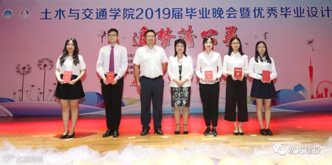 6月18日,华南理工大学土木与交通学院举行2019届本科生毕业晚会暨优秀毕业设计(论文)奖颁奖典礼,广州宏达工程顾问集团执行董事陈彤、董事兼执行总裁张萌、助理总裁兼行政及体系管理中心常务副总经理曾绮筠受邀参加了活动,张萌总裁为获得2019届“宏达优秀毕业论文奖”的同学颁奖。