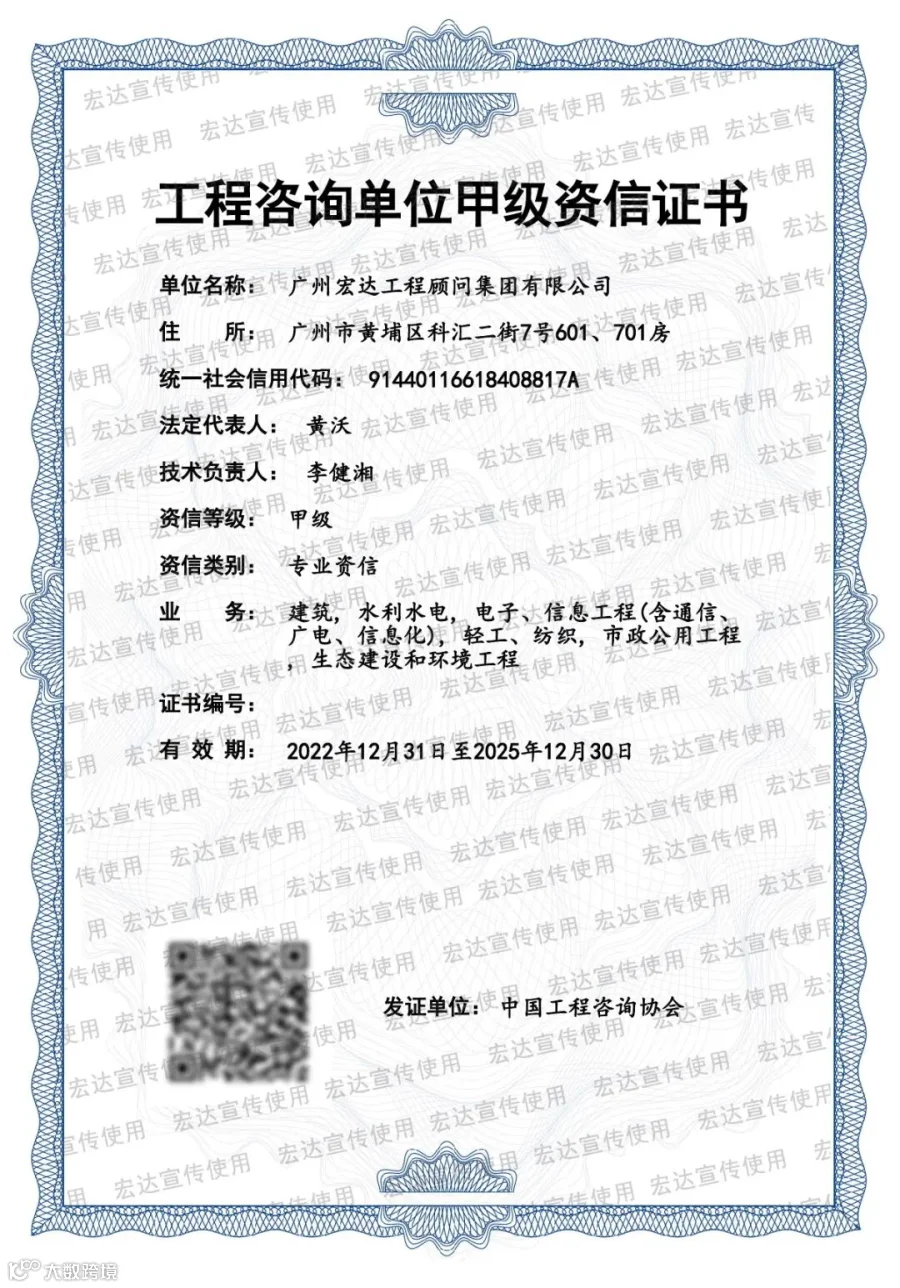 宏达还继续荣获了由中国工程咨询协会颁发的“工程咨询单位甲级资信证书”。这两个证书是由国家发展改革委指导,中国工程咨询协会颁发的、工程咨询行业的权威证书。