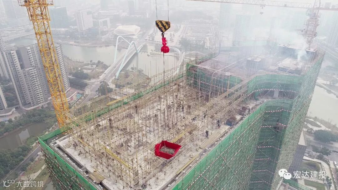 宏达项目部全体员工秉承“为客户承担,使项目增值”的服务宗旨,充分运用专业技术,克服了工程综合体量较大较复杂的困难,与各参建单位通力配合,实现了提前封顶。