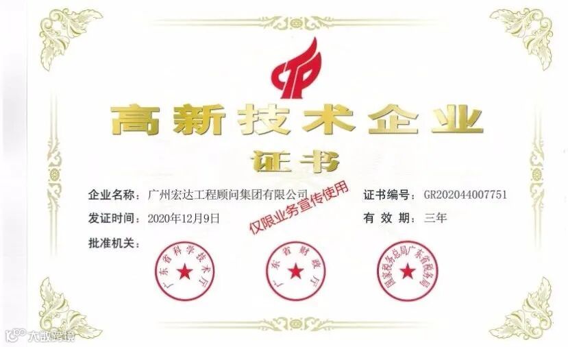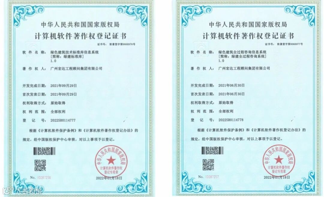 目前宏达已在众多建设项目中运用自主研发的高新技术,能够更加高效、高质量地应用于项目建设中,如:南沙明珠湾开发展览中心项目、南沙黄阁镇农民安置区(三期)A地块II区项目、广州白云国际机场扩建工程噪音区治理白云区治理项目、广州职业技术院校迁建一期安置区项目、珠海横琴总部大厦项目、湛江市自来水公司麻章7.5万平方米/日自来水工程项目、东莞名气通联合金融数据中心项目四期工程等。其中南沙明珠湾开发展览中心项目获广州市绿色建筑优秀奖一等奖,宏达为业主提供“绿色建筑设计标识证书、运行标识证书”的认证全过程咨询服务。