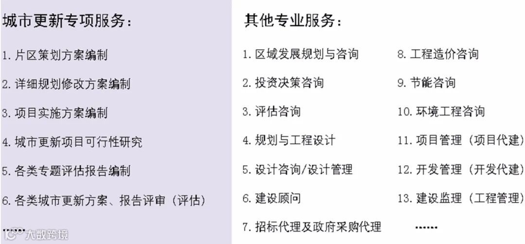 广州宏达工程顾问集团是中国知名的专业化、创新服务型的综合性工程咨询、管理及技术服务企业,拥有建设服务领域全产业链的能力,涵盖项目立项、投融资咨询、区域发展规划、项目开发策划、规划与设计、工程造价、工程招标采购、国际竞赛代理、项目管理、工程监理、运营与维护等服务。宏达在城市更新领域积累了丰富的项目经验,提供各类型的城市更新专业服务。