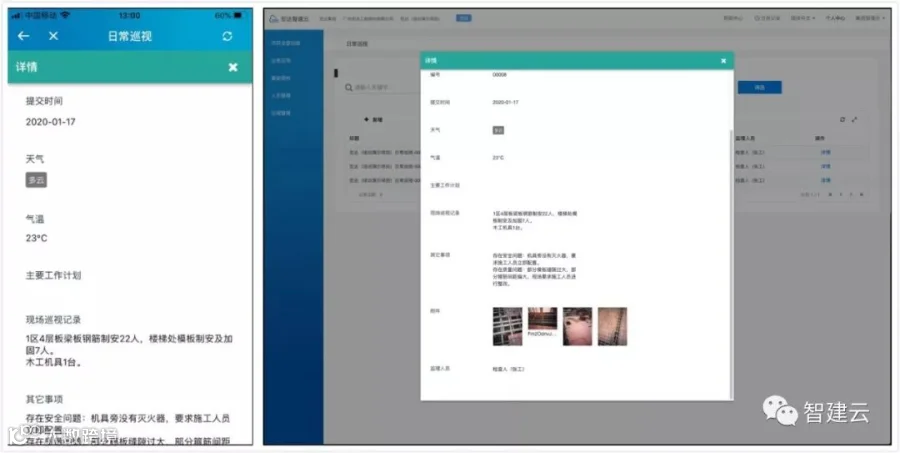 日常巡视:日常巡视,是指对于正在施工的部位,或者工序在现场进行时,监理人员的定期或不定期的监督活动,每一条记录都清晰记录着项目名、时间以及现场照片,让巡视都有迹可寻,有记录可依。