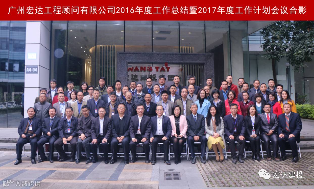 1月13日,广州宏达工程顾问有限公司2016年度工作总结暨2017年度工作计划会议在宏达建投大厦二楼培训室召开,宏达公司的领导班子、管理层及技术骨干代表等近百人参加大会。宏达建投集团董事长黄沃、执行董事陈彤等集团领导出席会议并作了重要讲话。