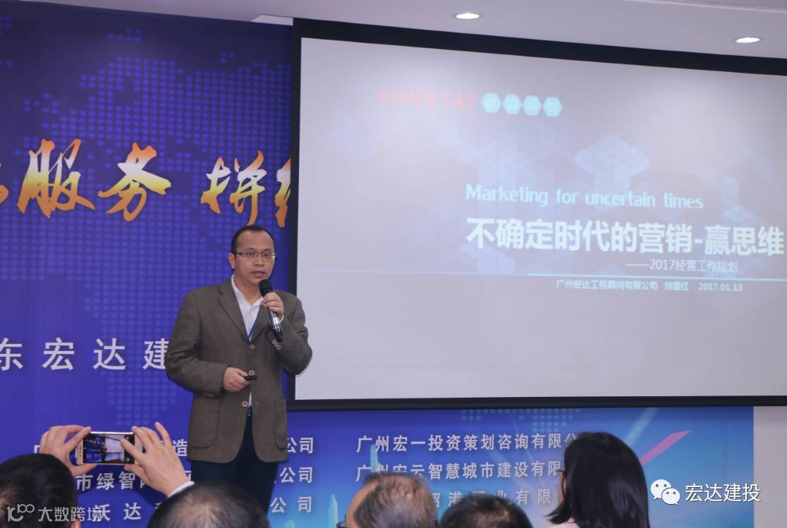 宏达公司副总经理、经营合同管理中心主管领导胡国红发表了《不确定时代的营销•赢思维》主题报告,围绕集团提出的发展方针,对公司2017年的经营工作进行了规划部署。