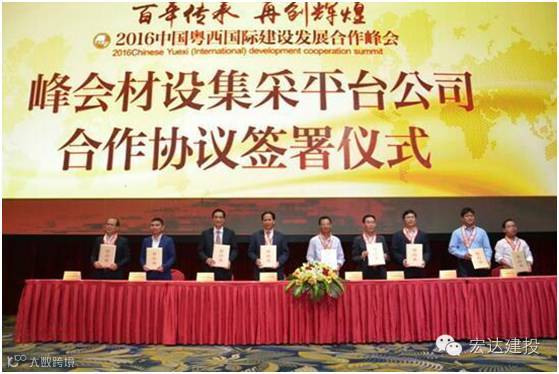 最引人注目的环节是峰会合作项目材设集采平台公司项目路演以及“峰会材设集采平台合作意向书”签约仪式、“峰会主席团联席主席企业签署合作协议”签约仪式。广州金辉建设集团董事长郑龙辉、广西平铝集团董事长谢志强、广东华茂达建设集团董事长陈庆南、广东诺厦建设集团董事长陈观来、广州市泰基工程技术有限公司董事长倪光乐、广东宏达建投控股集团董事长黄沃、建品汇创始人柯智耀、广州市德派集团董事长陈善之、广州高垠盛投资有限公司莫丕天等在峰会现场签约,峰会项目合作平台正式启动。