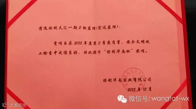 12月14日,由广州宏达工程顾问有限公司提供全过程建设管理服务的清远保利天汇花园一期二标项目,荣获2015年第三季度“华南杯”荣誉奖。