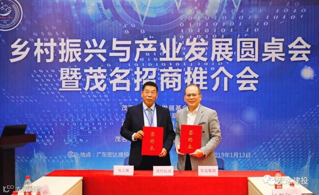 茂名是广东省农业第一市,全国最大的水果、经济林生产基地、全世界最大的荔枝和罗非鱼生产基地,粮食、蔬菜、肉类总产量居全省第一。乡村振兴的探索和实践,茂名走在广东和全国的前列。2018年10月18日,茂名举办首届全球茂商大会,全球一千多名海内外杰出茂商“回娘家”,率先成立了“茂名市茂商乡村振兴发展基金会”,助力茂名的乡村振兴和产业发展。本次联合举办的“乡村振兴与产业发展圆桌会暨茂名招商推介会”,成立“宏达乡村振兴发展研究院”,也是为茂名“把脉”和引资、引智,为茂名等地乡村振兴与产业发展提供技术和资源支持。