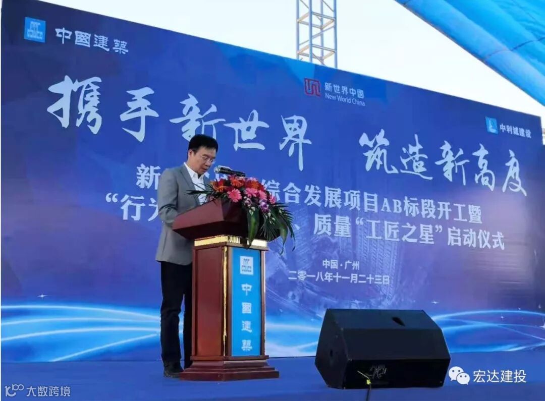 2018年11月23日,由广州宏达工程顾问集团提供建设管理服务的新世界中国增城综合发展项目AB标段总承包工程举行开工典礼,并举行了“行为安全之星”、质量“工匠之星”启动仪式;广州宏达顾问集团董事、执行总裁伍忠民受邀带领宏达项目团队出席了活动,并为活动致辞。