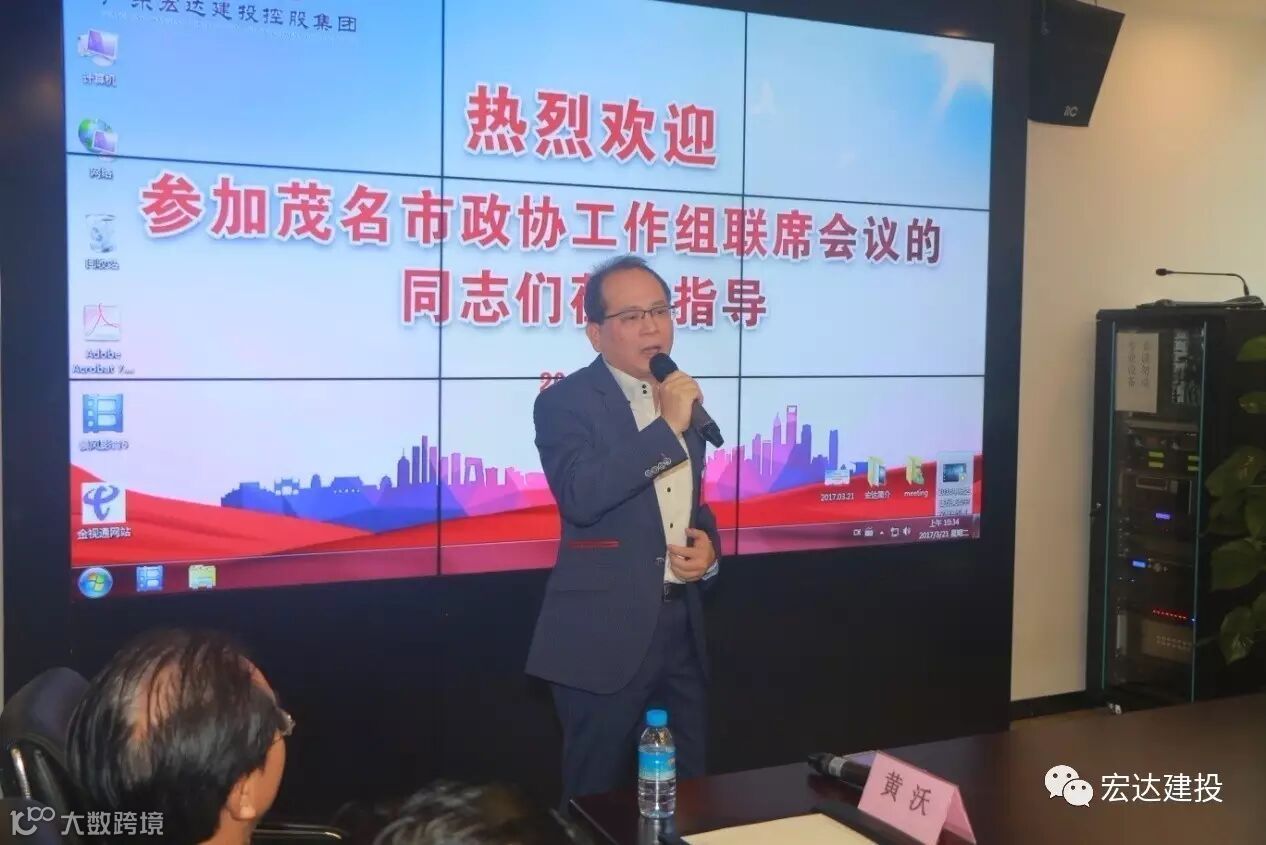 中国工程咨询协会副会长、茂名市政协常委、广东宏达建投控股集团董事长黄沃首先代表集团全体员工向考察团的各位领导表示了热烈欢迎和衷心感谢,并向来访嘉宾介绍了宏达建投集团的经营及发展情况。宏达建投集团是以建设行业的业务为重点,集建设投融资、工程咨询及管理、新型城镇化开发建设、绿色生态智慧城市技术研发及建设,以及实业投资几方面业务为一体的综合性企业集团。黄沃表示,将努力工作,积极履行政协常委的职责,并充分发挥宏达建投集团作为专业智囊机构及建设开发企业的作用,特别贡献宏达在城市发展、智慧城市建设、旅游发展等方面的研究力量和技术力量,同大家一起,为推动茂名经济、社会发展多做贡献。