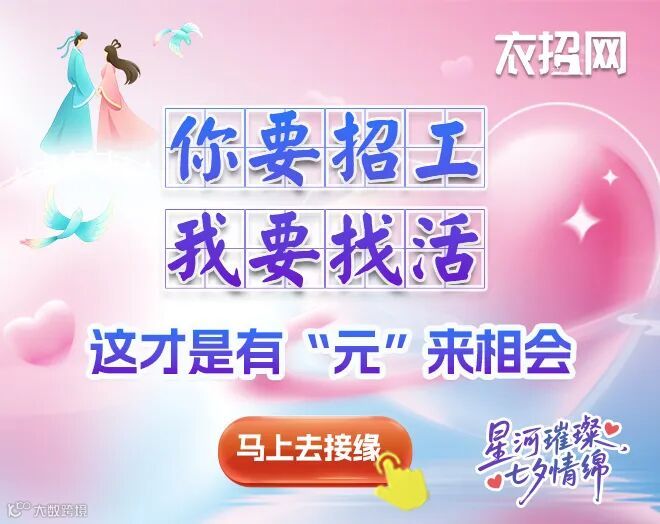 不必羡慕牛郎织女一年一会的执着,在衣招网,随时都能开启与心仪订单的 “约会”。七夕已至,快来衣招网,邂逅让你心动的“