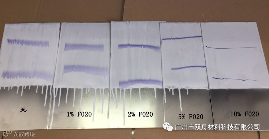 然后就是实验样品:WA7510-20(20%预凝胶)、F020(20%预凝胶),分别对总配方做1%、2%、5%、10%梯度对比试验。