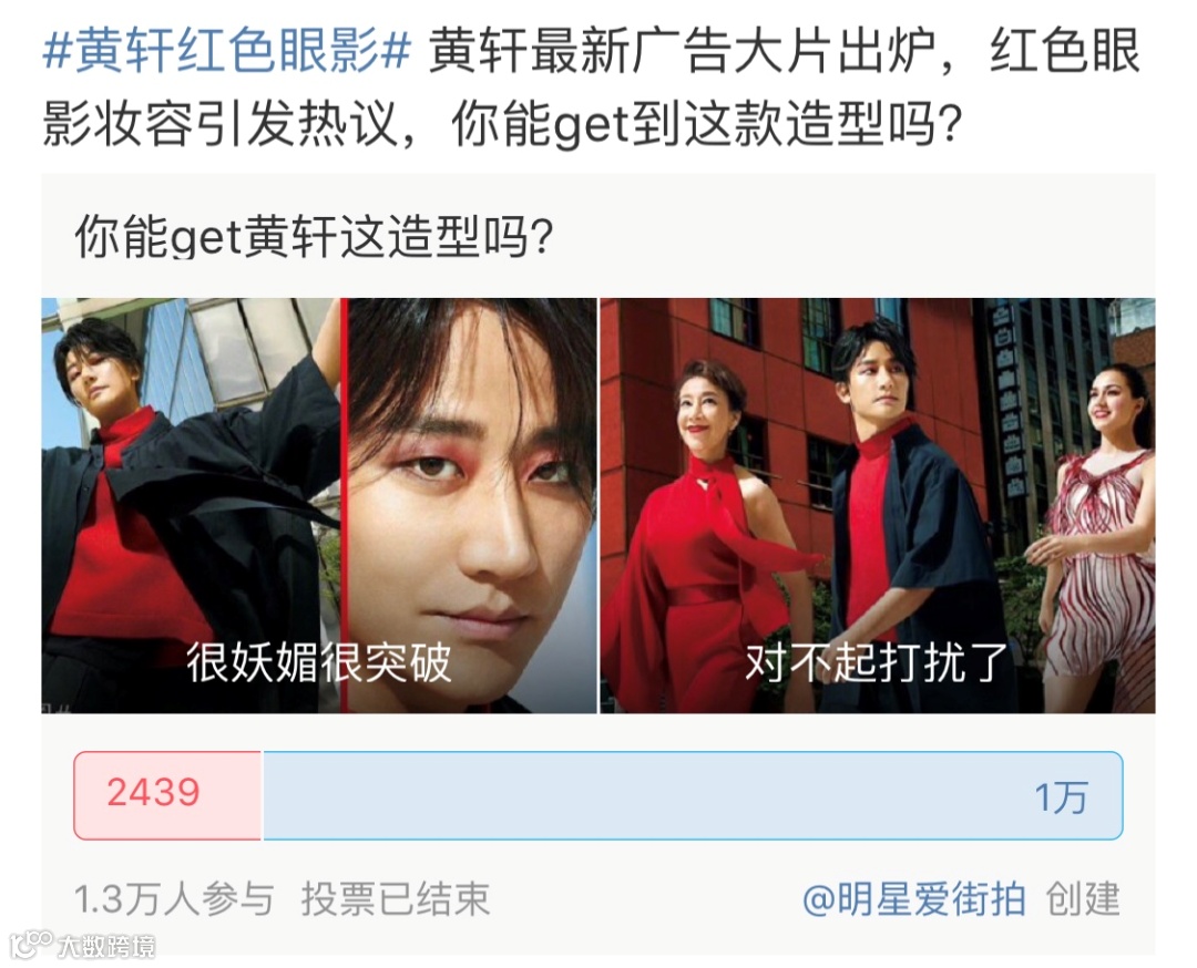 片子一出来,#黄轩红色眼影#就挂在了热搜上。