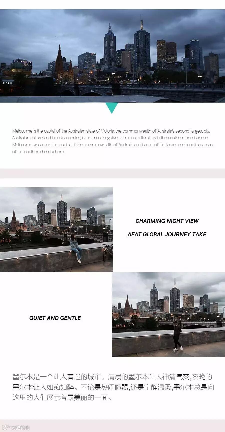 导读:阿发特《全球旅拍》拍摄团队飞跃了印度洋,到达了位于南半球的澳大利亚第二大城市墨尔本。