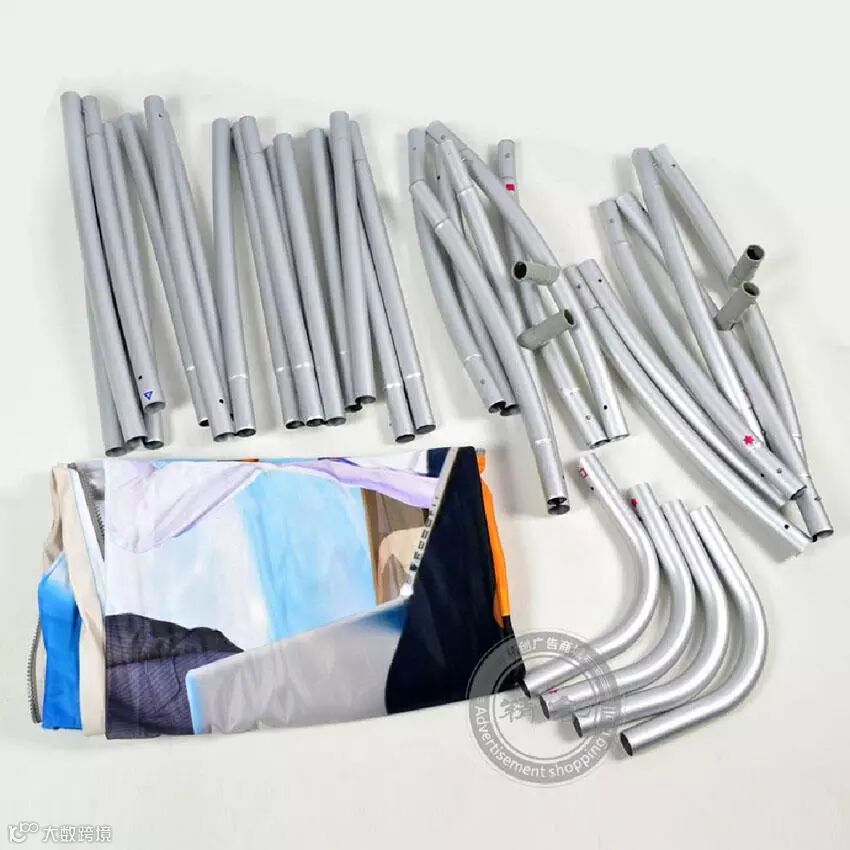 快幕秀由两大部分组成,一是可组装可拆卸的铝合金管件,二是缝合拉链的经编弹力布(热升华布/热转印布)。
