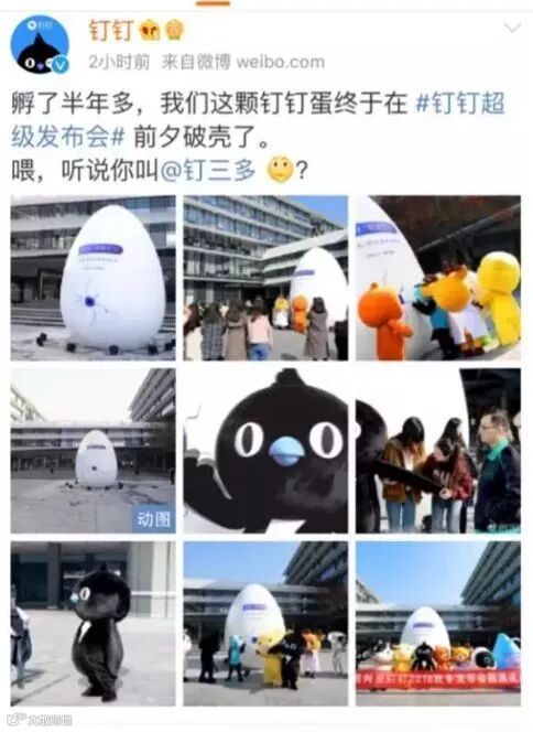 与此同时在钉钉官方微博上也展示了“钉三多”的破壳过程!