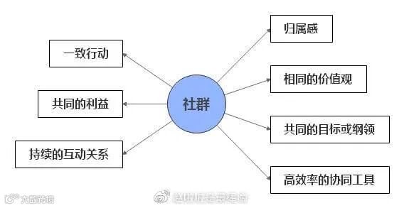 2、共同的目标或纲领~人是抱着一定的目的加入社群的,而同一个社群里的成员也会形成共同的目标。社群管理者应将这些目标作为纲领,指引成员的发展。通常来说,只有成员有共同的目标,才会聚集到一起,并形成巨大的社群凝聚力。