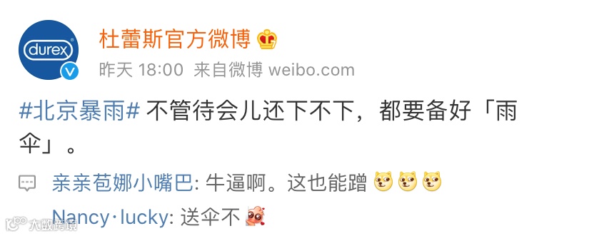 还有一个想告诉你们,女王发现许久不蹭的杜蕾斯重操旧业,蹭热点了。