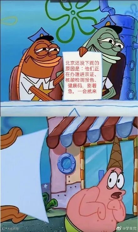 糊涂啊,口罩忘了,让他们接着等吧。玉皇大帝:这雨是下还是不下啊。