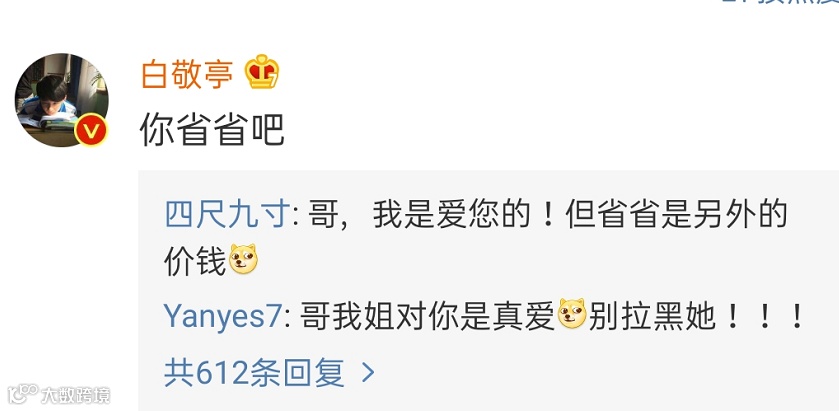 该粉丝还被白敬亭本人回复道:“你省省吧”