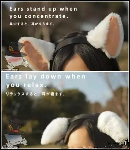 可通过传感器对佩戴者的情绪变化作出反应。如果佩戴者情绪沮丧,猫耳便会倒下;注意力集中时,猫耳会竖起;心情愉快时,猫耳会来回摆动;感到疲惫时,猫耳便会像泄了气的皮球一样。卖萌者专用~~