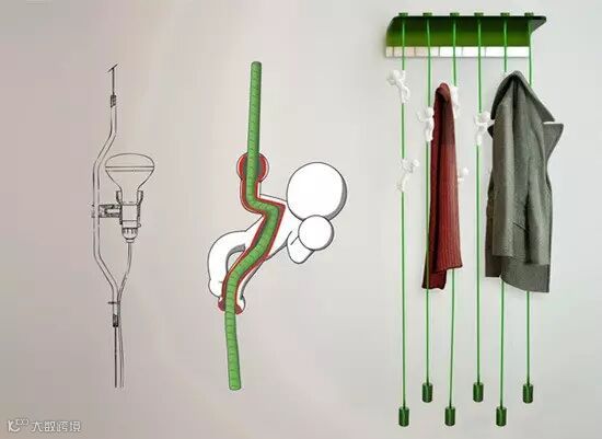 装一个或是一排挂钩,有趣的,可以像这样,是一个个在绳子上攀爬的小人。这些穿在绳子上的小人生动可爱,圆滑的身体可避免给衣物带来损害