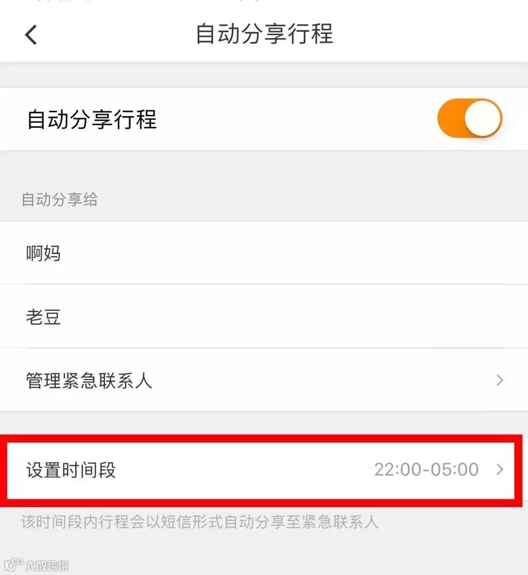 点击开启"自动分享行程"