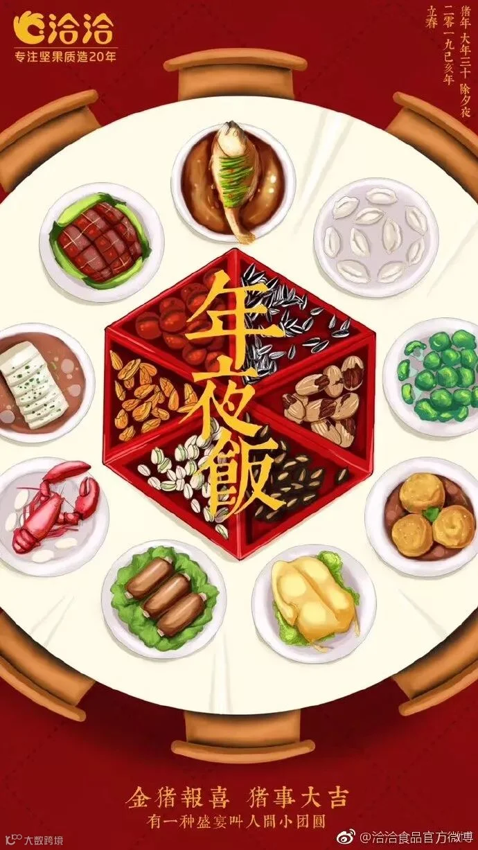 挂两个灯笼,贴几条窗花对联,张罗一大桌子年夜饭,这才是正儿八经的除夕标配!全家人围坐着,等待猪年钟声的敲响,迎接农历新年!