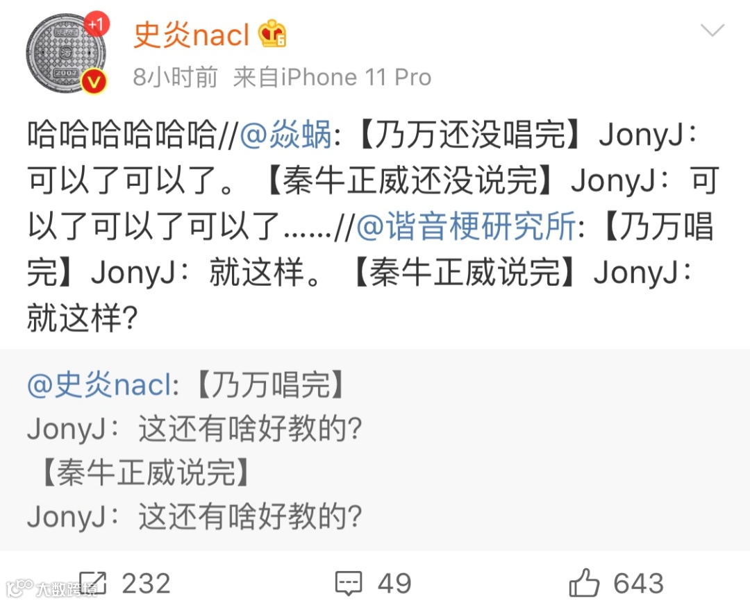 在这里也对Jony J老师的女儿说一句:你的爸爸真的很爱你,他为你付出了很多。他拿着奶粉钱却听着毒药,长大了别忘了给他买副好的助听器。