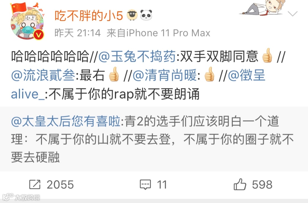 rap中间竟然能穿插诗朗诵,这着实秀到了我,我看这个节目不应该叫《青春有你》,应该叫《青春诗词大会》,应该叫《青春汉语桥》,应该叫《青春朗读者》
