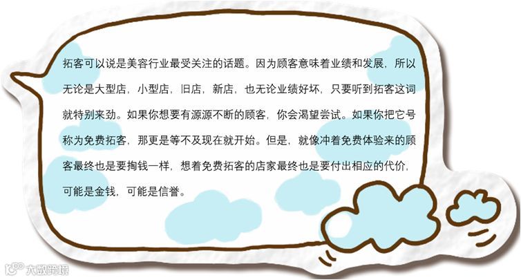最开始的拓客方式,但转换率较低。尤其是,新店肯定会制作好宣传单,并安排美容师和顾问分发到街道,商场和社区。