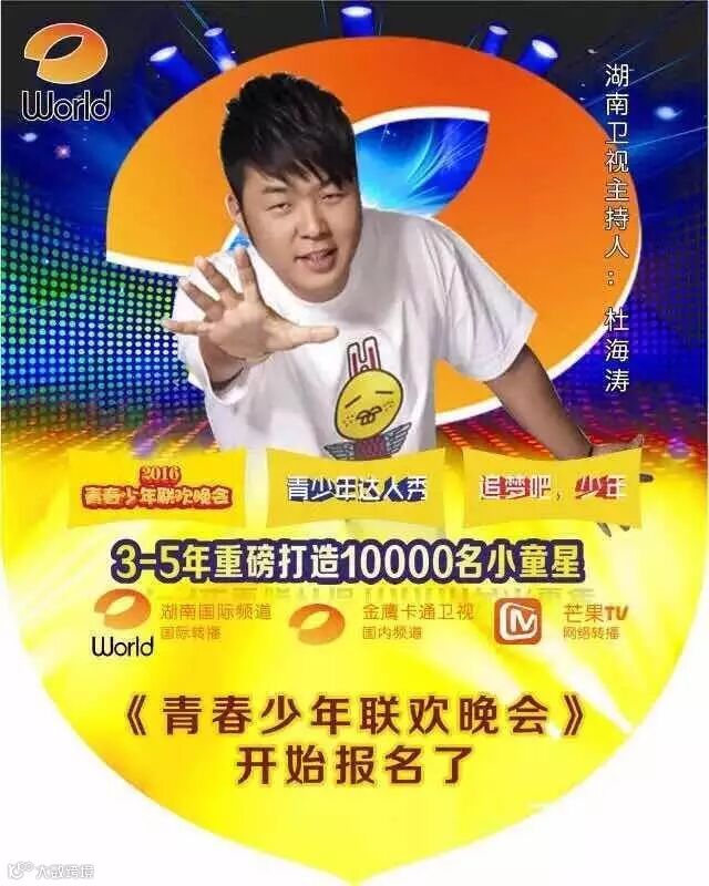 同样,由湖南国际频道和星空影视战略合作的“快乐中国——2016首届青春少年联欢晚会”报名已全面启动。该晚会是一档整合多方优势资源重磅打造的青少年电视综艺节目。晚会定位于“亲子和才艺展示”,计划在全球发掘10000名具有才艺特长的优秀青少年,重磅打造精品视听艺术盛宴。加入我们,你将会是下一个童星!!