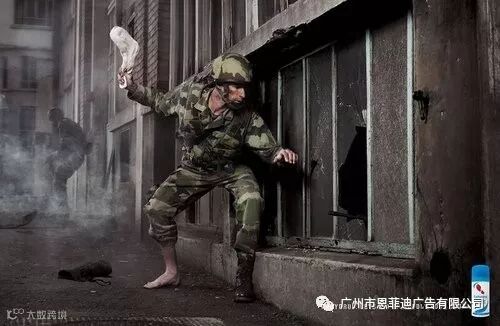 驱除脚臭的一款产品的广告,利用袜子的臭气,当做催泪弹用。呵呵