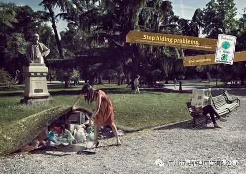 又是一则公益广告,让大家不要去把身边的垃圾隐藏起来,要想办法如何真正的处理掉这些垃圾。