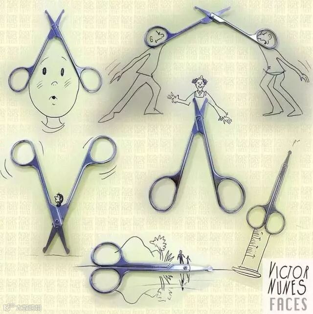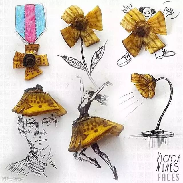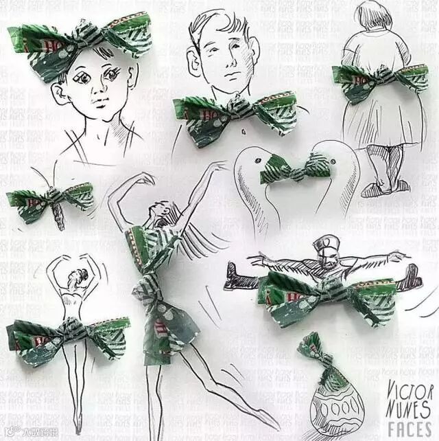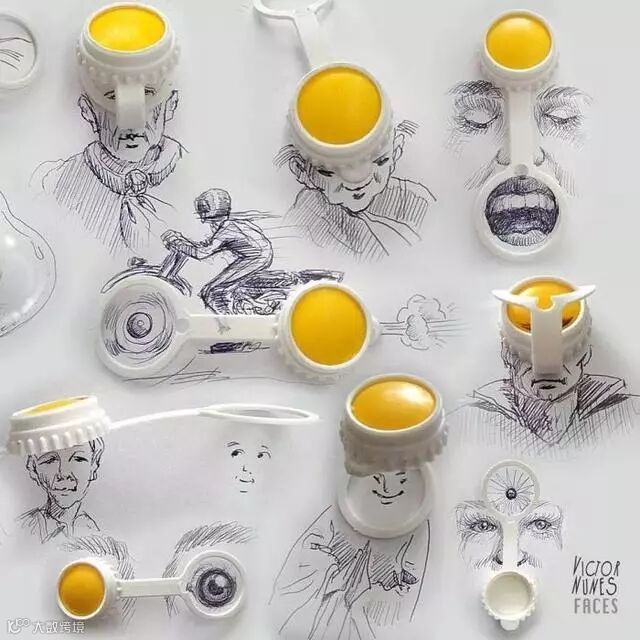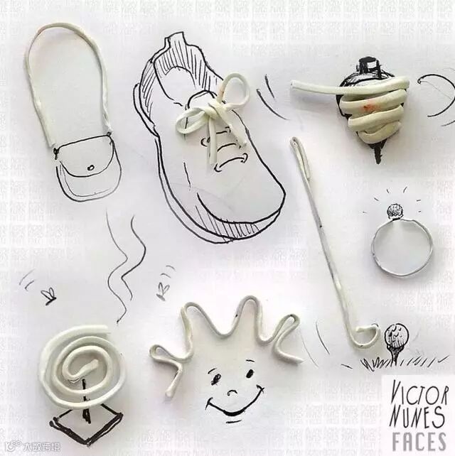 Victor Nunes开设了一个Facebook帐户@Victor Nunes Faces ,日常更新创意插画作品,他将日常生活中的小物与插画结合,形成一副立体插画,充满脑洞!