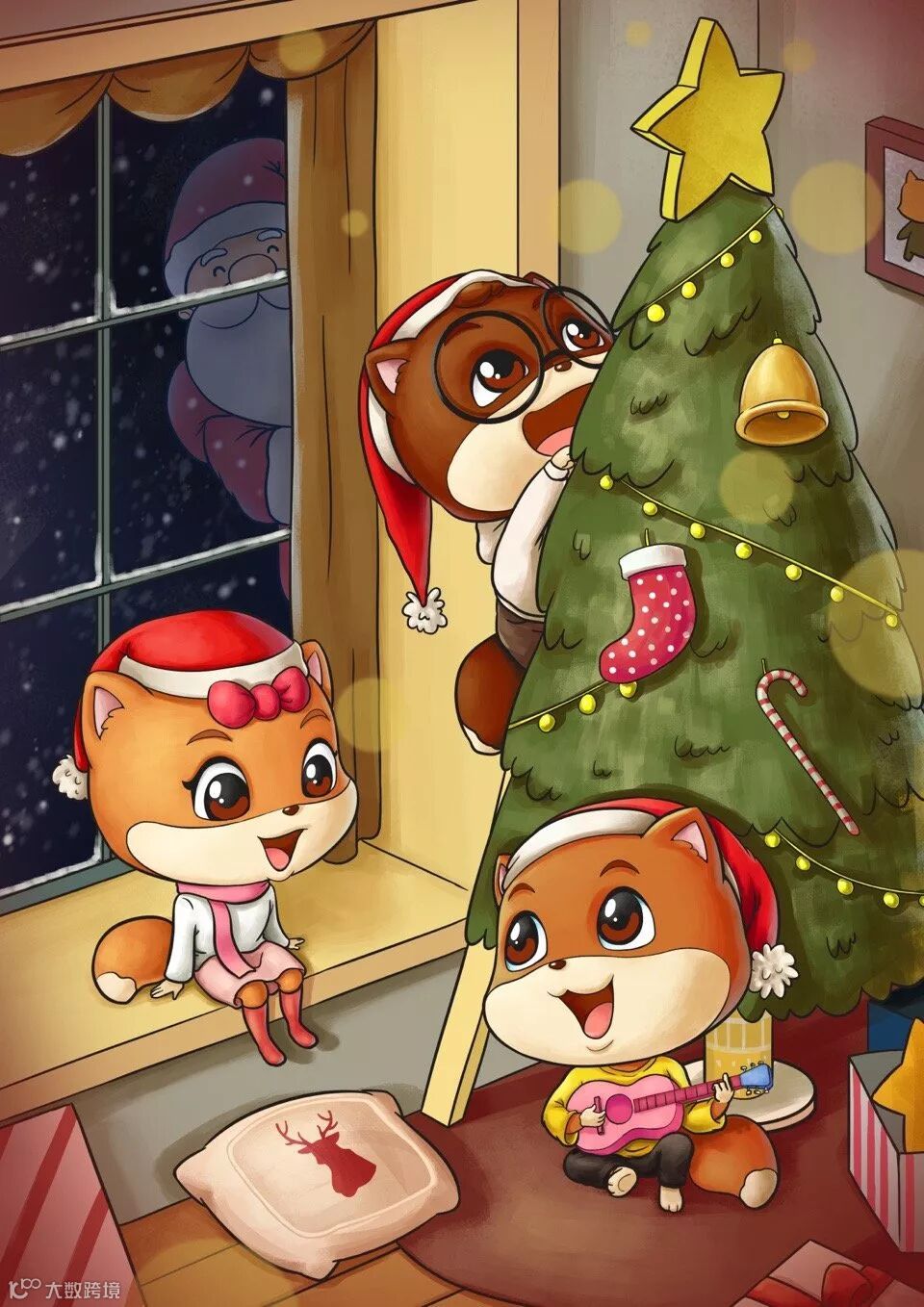 融入了圣诞帽、袜子、圣诞老人等元素