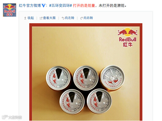 说到五环变四环,索契冬奥会的开幕式着实是让大家有些意外,但也就是这个意外,2014年的借势营销也因此拉开序幕,虽然体育场上空绽放的五朵巨大的雪绒花,由于技术失误,有一个环却始终没有成功绽开,但是关注冬奥会的世界各地的人们则开始了一场欢乐的五环变四环事件营销活动,根本停不下来!