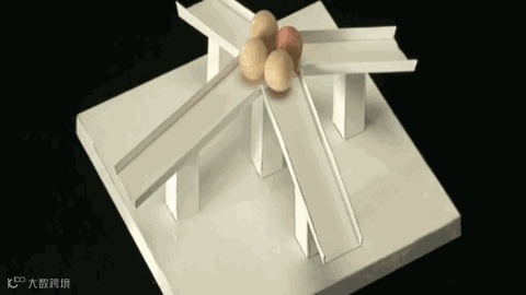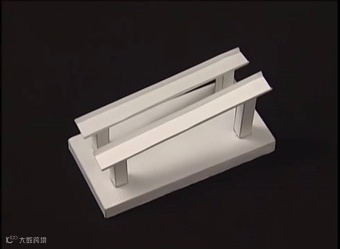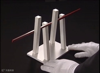 木棍从四根长柱之间穿过: