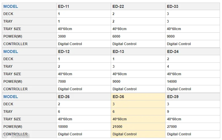 1. Heating element is evenly distributed, temperature of cchamber very even, difference is in 3°C, baking product's color is evenly.