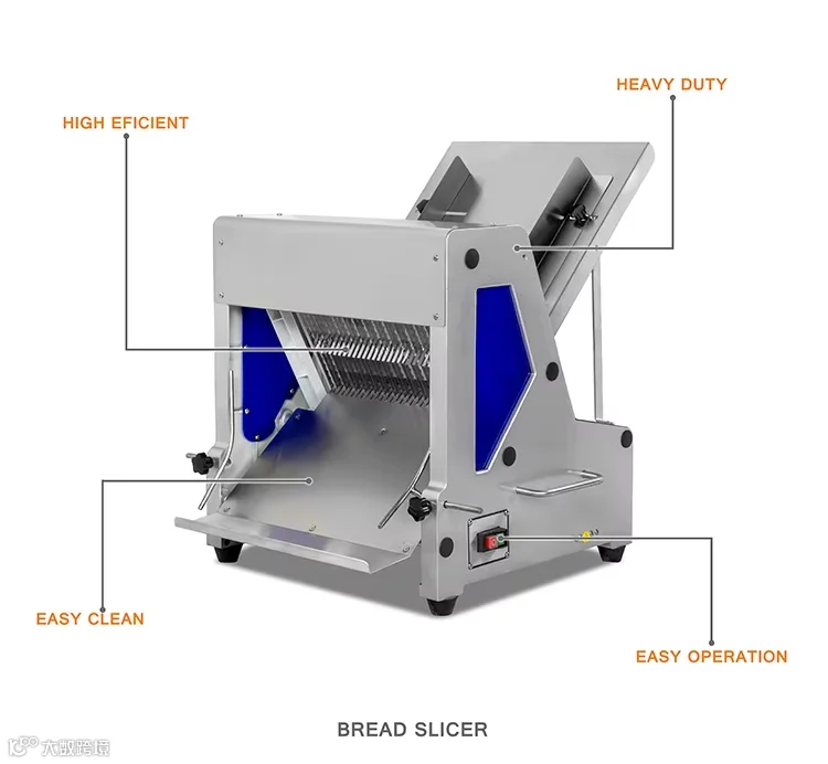 1.highlights:This 12mm Commercial Automatic Bread Slicing Machine offers high productivity with 31 slices per loaf, suitable for bakery shops and various commercial applications. Made of durable stainless steel, it ensures longevity and hygiene. The machine operates electrically, supports multiple plug types, and is CE-certified, ensuring compliance with EU safety standards and providing market access. It features adjustable slicing thickness and comes with a 1-year warranty for reliable after-sales service.