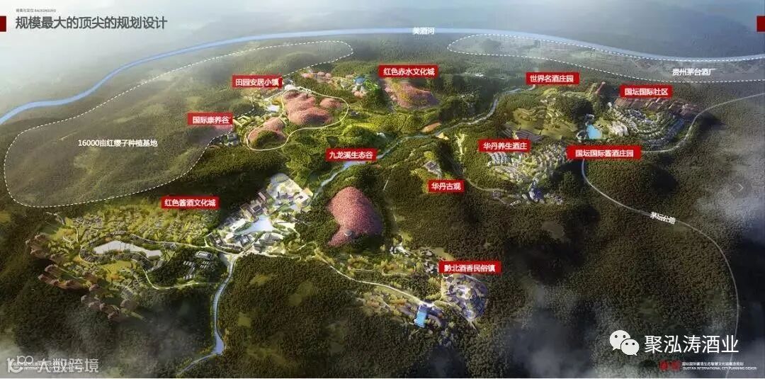 国坛在茅台镇投资65亿打造酒道大文旅生态综合体——中华华丹·国坛酒庄,一期工程占地3080亩。在不久的将来,人们可以来到这里品美酒,订美酒,藏美酒。还可以进入国坛酒庄书美酒、住美酒、聚美酒,亲朋好友相聚国坛酒庄、共赏美酒。酒类爱好者将有机会更近距离的接触,更深入的了解酱酒,通过看原料、看酒庄、看酿造来实现体验价值。
