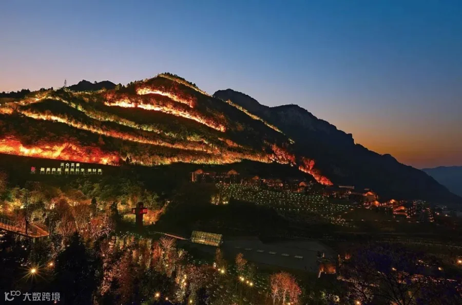 清波如碧山魅影,谷堡霓幻不夜天。
