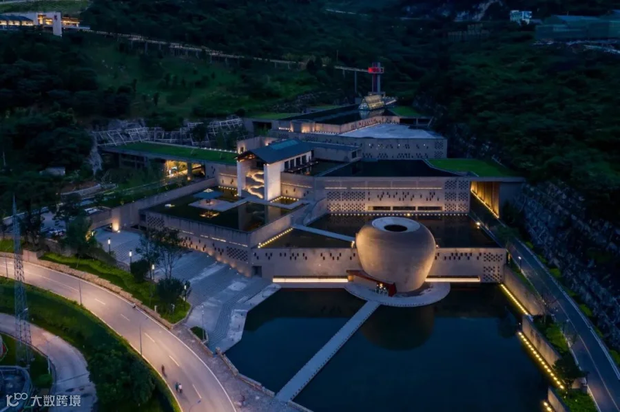 的相对恒定,同时又实现了良好的景观效果;尤其是入口处用约15万匹陶砖砌筑而成的大酒坛,更是将设计的匠心表现的淋漓尽致。从赤水河对岸远眺,嵌进山体的金樽堡,与背景环境浑然一体,静谧而优雅。