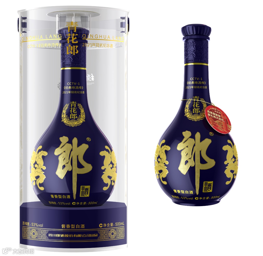 经典青花郎,经典咏流传。为致敬经典,传承经典,青花郎携手『经典咏流传』推出2021「青花郎·经典咏流传冠名纪念酒」,该款纪念酒瓶颈处喷印「CCTV-1经典咏流传2021年冠名纪念酒」字样。同时,瓶颈吊牌上喷印「向英雄致敬,献礼伟大时代」字样及相关图案,献礼建党百年,彰显文化自信和品质价值。