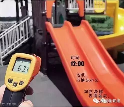 事实上,塑料健身器材的“热火程度”,真心不输于金属。据检测,正午12点时塑料滑梯的表面温度就达到了63.7℃。