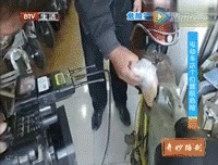 实验一:用一根鸡爪模拟人手,把硬币固定在鸡爪上面,然后插到充电口。实验结果显示:硬币只要一接触电动车的充电口,火花四溅,被烧开一个洞,鸡爪被烧黑。