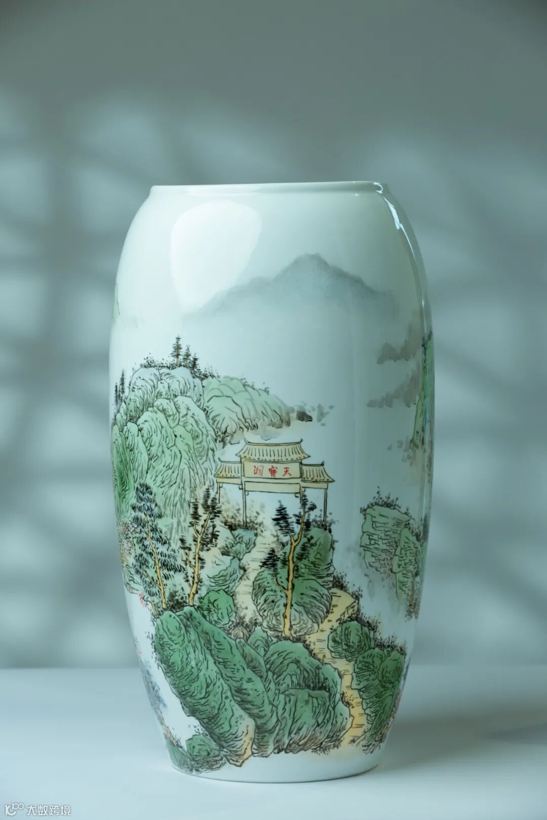 于青花瓷上将二郎山水浸涵